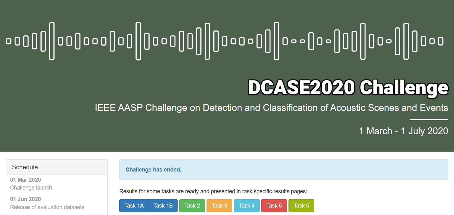 DCASE2020挑战赛由美国电气和电子工程师协会(Institute of Electrical and Electronics Engineers, IEEE)、坦佩雷科技大学(Tampere University of Technology)、萨里大学(University of Surrey)以及Google人工智能研究所等机构联合举办,其也是当前国际声学事件领域最具权威的竞赛。