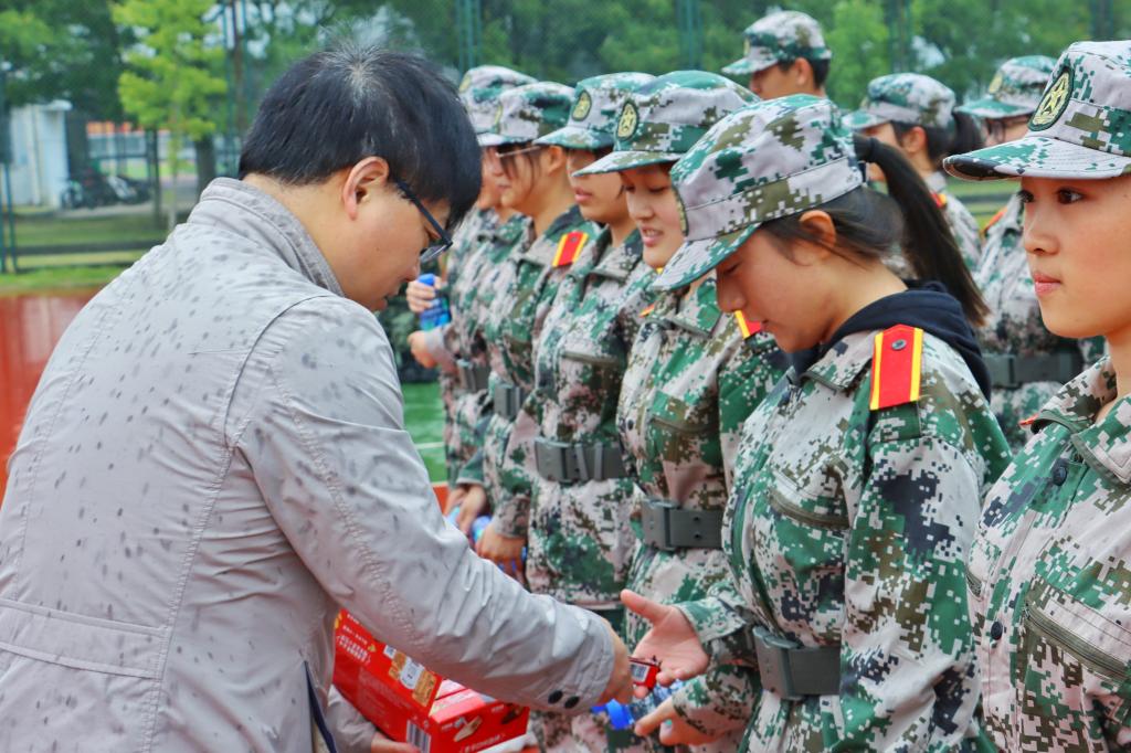 党委书记高雪梅、院党委副书记、副院长方俊和校人武部韦红武老师冒雨来到训练场地看望慰问新生,传达学院的关心和问候。