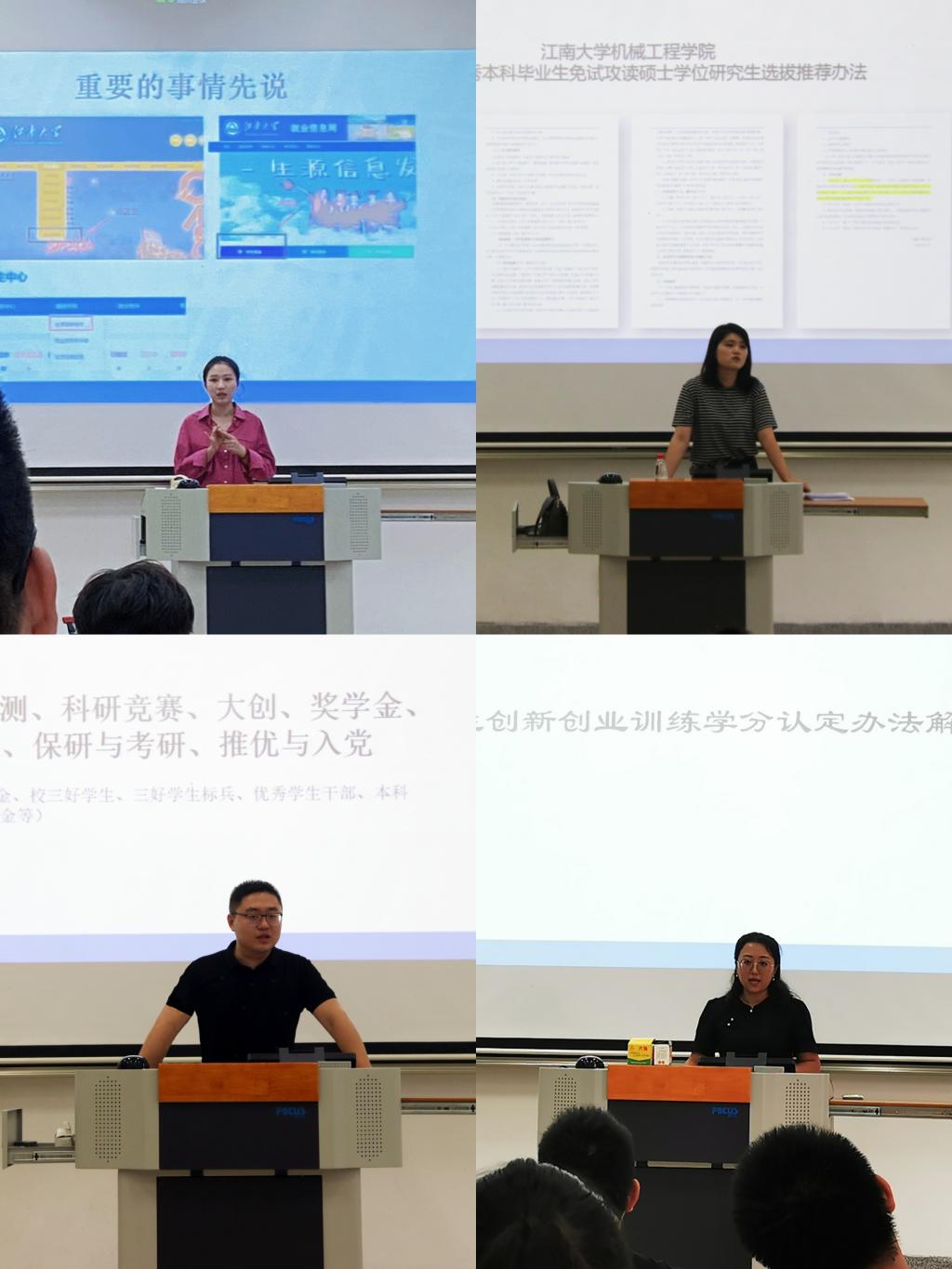 作为刚刚踏入大学校园的大一新生,亟需老师加以引导、鼓励与规范。2022级辅导员张倩瑶、宋京姝向新生就校纪校规、综合测评、奖助学金、违纪处分、创新创业训练学分等政策进行了解读,引导同学们在接下来的四年大学生涯中守纪好学、全面发展。张老师结合学校政策文件向在场同学进行了诚信教育、入党教育及考风考纪宣传,并通过大学四年生涯路线图提醒大家尽早规划未来,充分准备以应对未来可能出现的迷茫。
