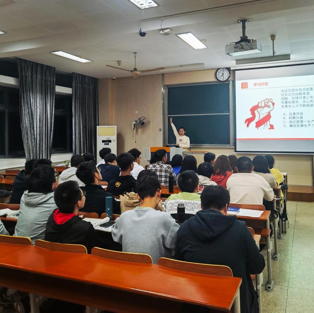 学院分团委始终将学生的“思想建设”放在首位,各团支部以领学、知识竞赛、小组讨论、观看影片等形式先后开展了一系列政治理论学习活动,通过对《论党的青年工作》《习近平谈治国理政》等理论深入学习,以及观看《非凡十年》等短片,提高学生的政治觉悟,坚定“四个自信”。另外,团支部也通过朋辈研讨的方式开展党团共建,邀请优秀党员讲述优秀事迹、分享优秀经验、弘扬先进思想。