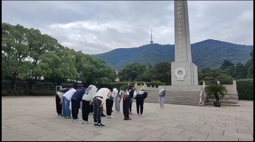 机械2101团支部对烈士纪念碑鞠躬表达敬意