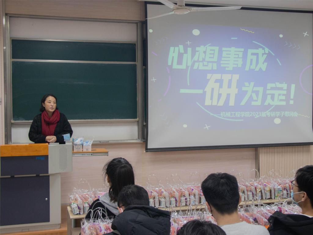 全体考研学子的辛苦付出,代表学院向考研学子表达了关心、慰问和祝福,并给同学们提出了三点建议:一是调整好心态,坚持不放弃。考研虽然艰苦,但成长的过程却是快乐的,无论考研结果如何,努力必有收获,希望大家调整好心态,以最饱满的状态走好考研路;二是坚定目标,奋斗不停歇。在冲刺阶段,进入了决胜时期,更需要大家以一往无前的奋斗姿态冲刺考研“最后一公里”;三是劳逸结合,张弛要有度。在考研冲刺阶段,需要注意保暖和饮食并做好个人防护,同时,要学会释放情绪,切忌浮躁、焦虑,适当排解自己的不良情绪,尽量让自己用最好的状态迎接考试。