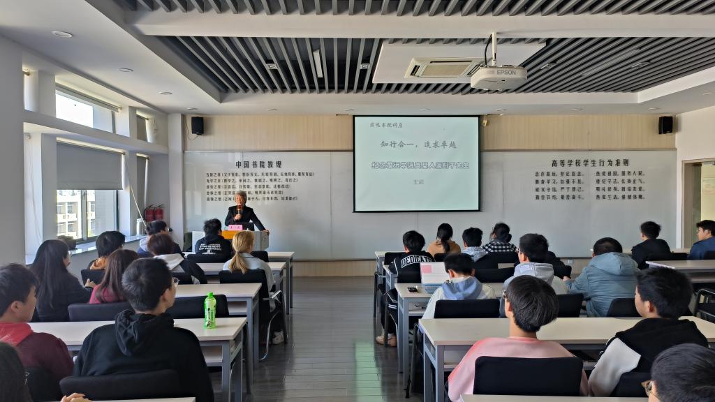 报告的最后,王武再次回顾君远学院的办学理念,分享院训的感召与启发。“知是行之始,行是知之成”,要深入理解“知行合一”的内涵,并进一步强调了现代知行观的内涵——涵养正气、淬炼思想、升华境界、指导实践,呼吁君远学子形成自觉向上的现代人才观和知行观,汲取唐老及唐氏家族的精神品格和思想境界,为自身成长注入丰富的营养。