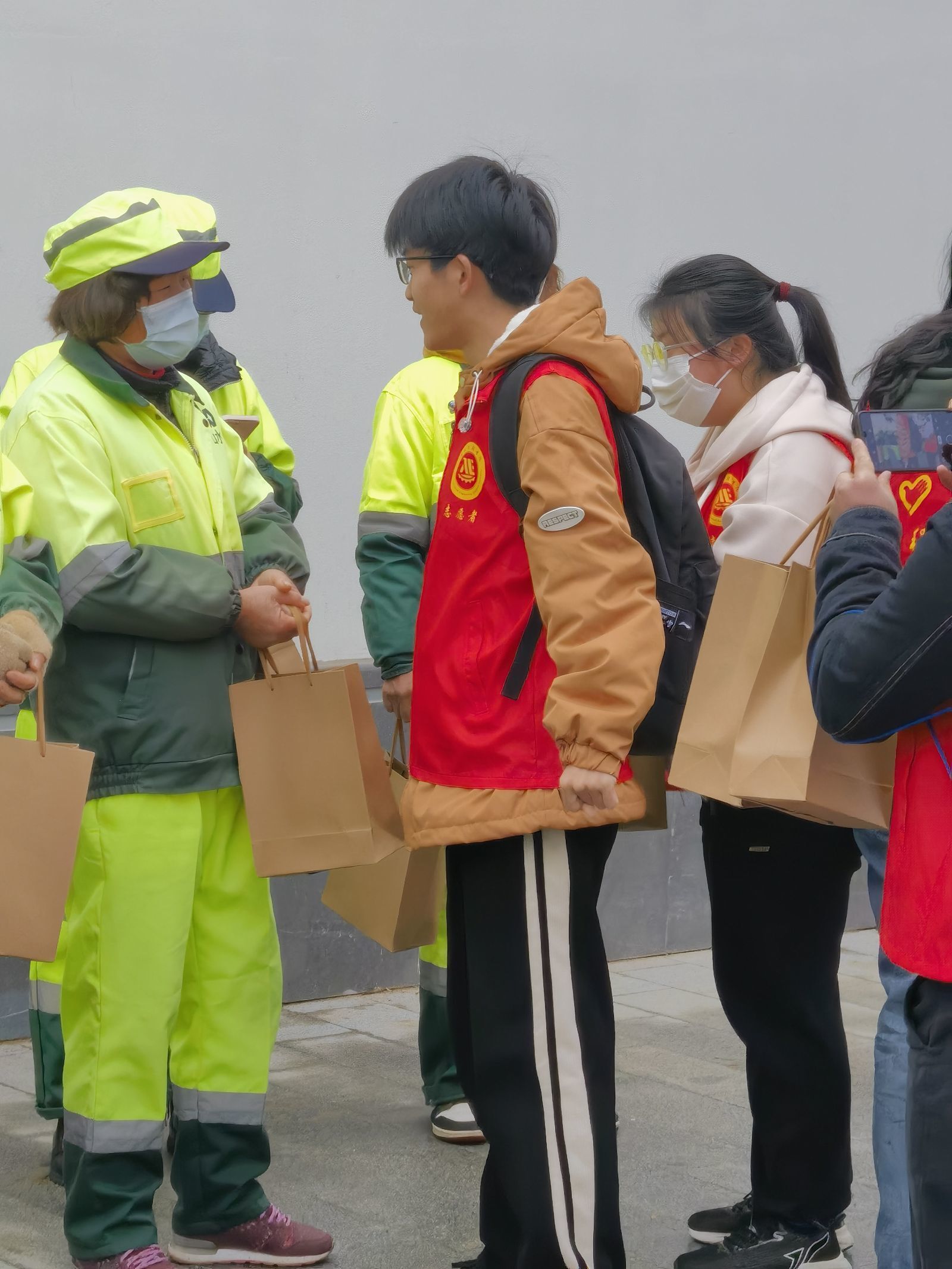 志愿者与环卫工人交流