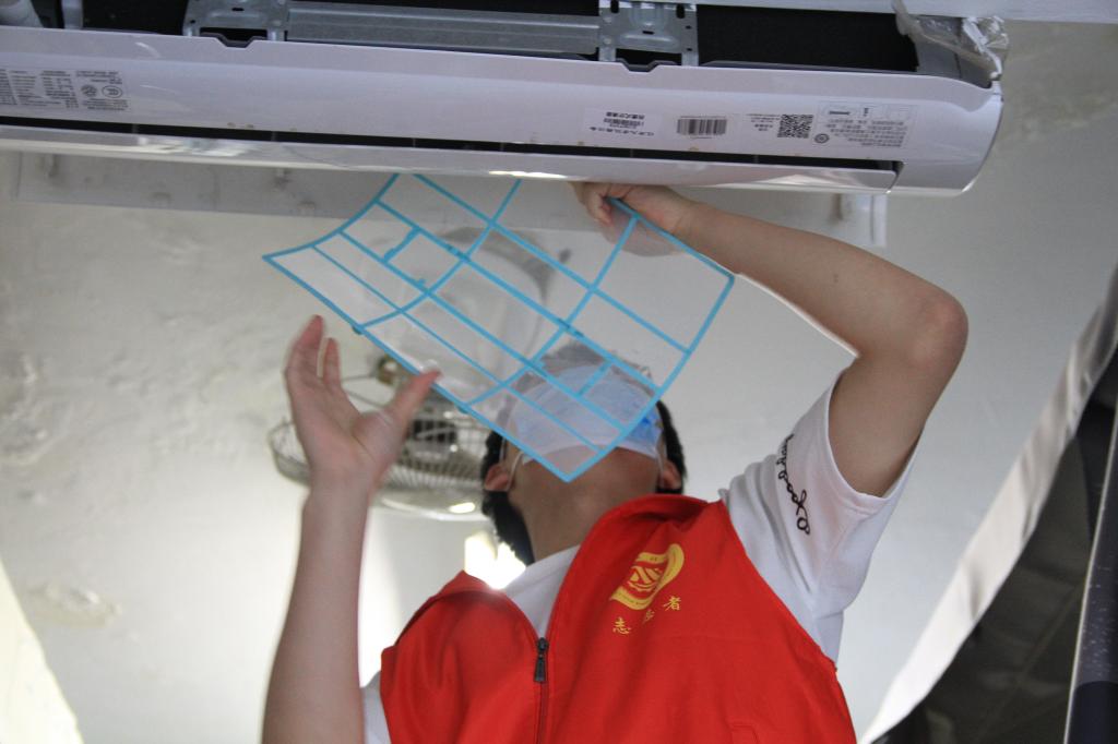 在志愿服务正式开展前,黄丽萍向同学们发放工具、示范空调滤网清洗的步骤,并对同学们积极参与园区志愿服务表示感谢。余骏皓为志愿者们进行分组、分楼层、分宿舍,叮嘱学生认真清洗的同时要注意安全。在所有志愿者的努力下,经过一下午的辛勤劳作,榴园16号楼82个寝室的空调过滤网均清洗干净,为还未到来的夏季酷暑提前做好了“降温”准备。