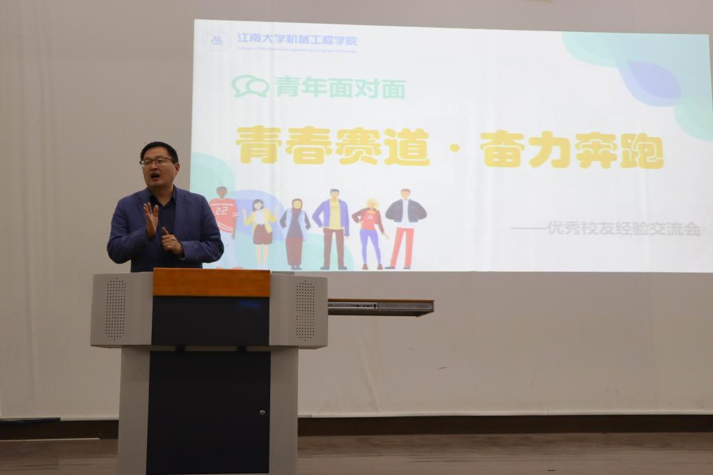 在教学楼1C109教室举办“青春赛道,奋力奔跑”优秀校友经验交流会。本次交流会邀请到了机械学院2000级校友、江南模塑科技股份有限公司研发总监薛旷华,2006级校友、迪卡侬全球采购和智能制造硬件事业部中国区负责人陈博。汇旺娱乐