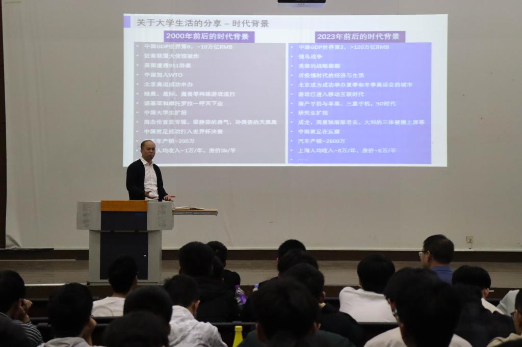 陈博从“我和大学”、“我和工作”以及“更好的自己”三个方面分享了他的大学经历以及从事机械行业的心得,并通过讲述他的毕业设计、考研与就业的选择,与同学们交流了专业与职业的联系,并引导同学们珍惜当下、清晰选择、提升能力、保持健康,做有“韧性”的大学生。