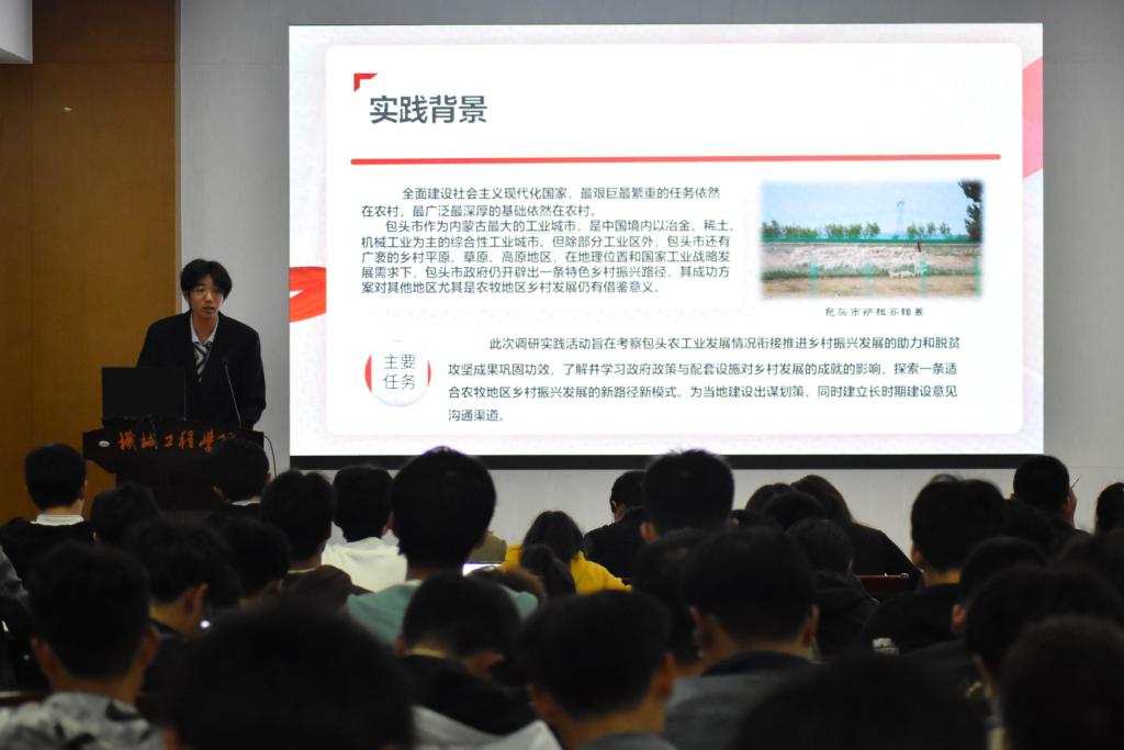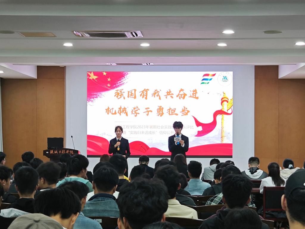 “强国有我共奋进,机械学子勇担当”暑期社会实践优秀团队评比暨“实践归来话成长”信仰公开课在学院c302顺利举办。学院党委副书记、副院长刘升恒,学工办主任兼分团委书记孟召双、学工办副主任潘智琦及全体辅导员参加并担任评委。