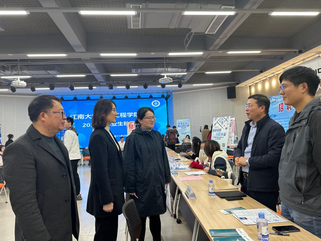 党委副书记、副院长刘升恒,副院长钱善华,副院长王东祥来到招聘会现场,在展位前与用人单位、求职学生互动交流,进一步了解企业用人需求和学生求职诉求,鼓励毕业生树立正确择业观,主动获取就业信息,提升求职技能,把握就业机遇,尽快找到自己心仪的工作。