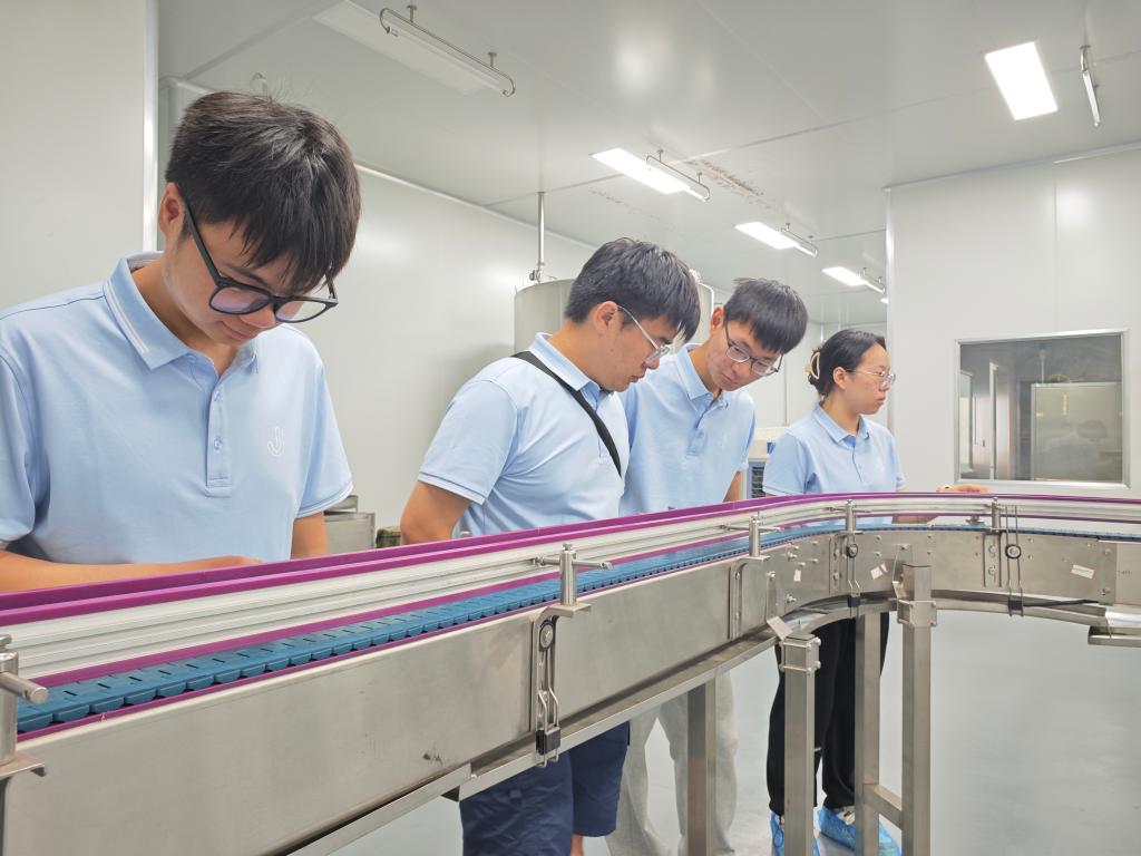 同时,当地企业牢牢把握科技赋能优势,做到从制造到“智”造的转变。新质生产力的“新”在于创新。从零配件生产到整车创新研发,这里规模庞大的电动车产业正加快技术突破,展现出“智造”的产业魅力。来到拥有标准化的产品制造基地和大规模的研发团队的梦天机电厂,实践团成员们看到了雅迪、台铃等国内顶尖电动车品牌的电机专用流水线高效运转。在宗申电动车生产基地,负责人带领实践团成员参观了结构车间,现场观摩了车辆焊接、冲压、电泳等制作工艺。在交流中,负责人表示“与传统人工操作相比,焊接车间生产线大部分工作被机械取代,不需要很多人工也可以轻松操控,精密度相比于人工焊接要高出很多”。在盛象新能源车辆研展中心,实践团学生对现场展示的新能源车十分感兴趣,纷纷坐上车试驾感受,并就电动车个性化定制、电池续航提升、座舱安全性提升等方面与负责人进行交流,现场对零部件的搭配选择进行探讨。