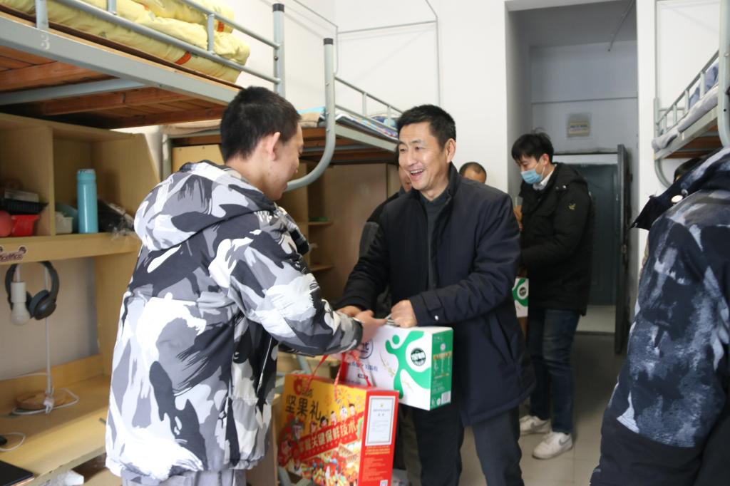 校党委副书记戴月波为留校学生送上节日慰问品