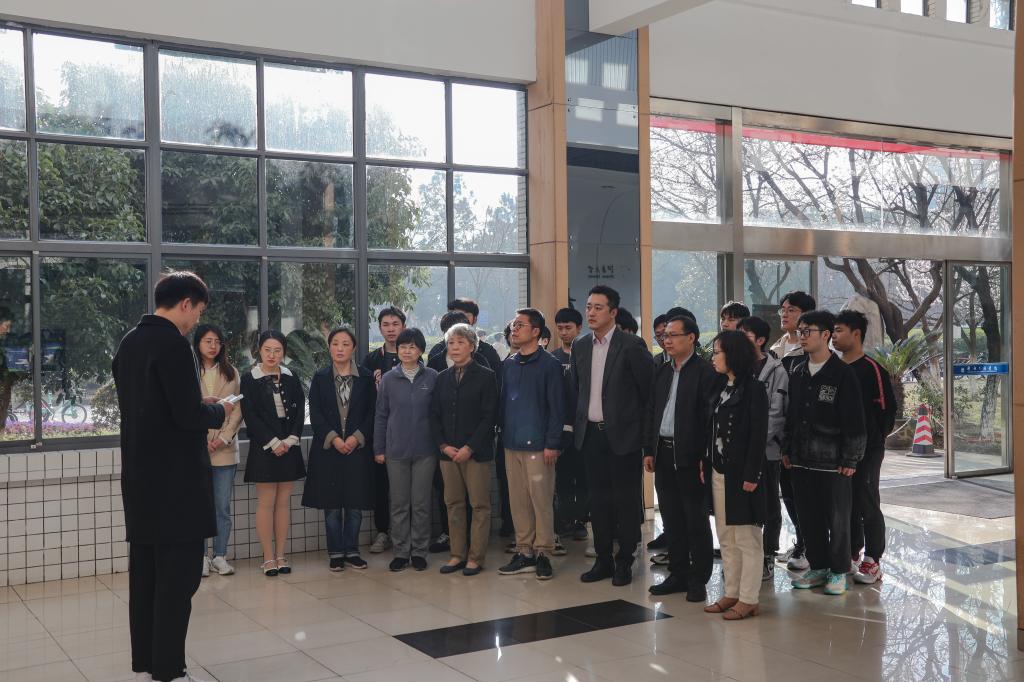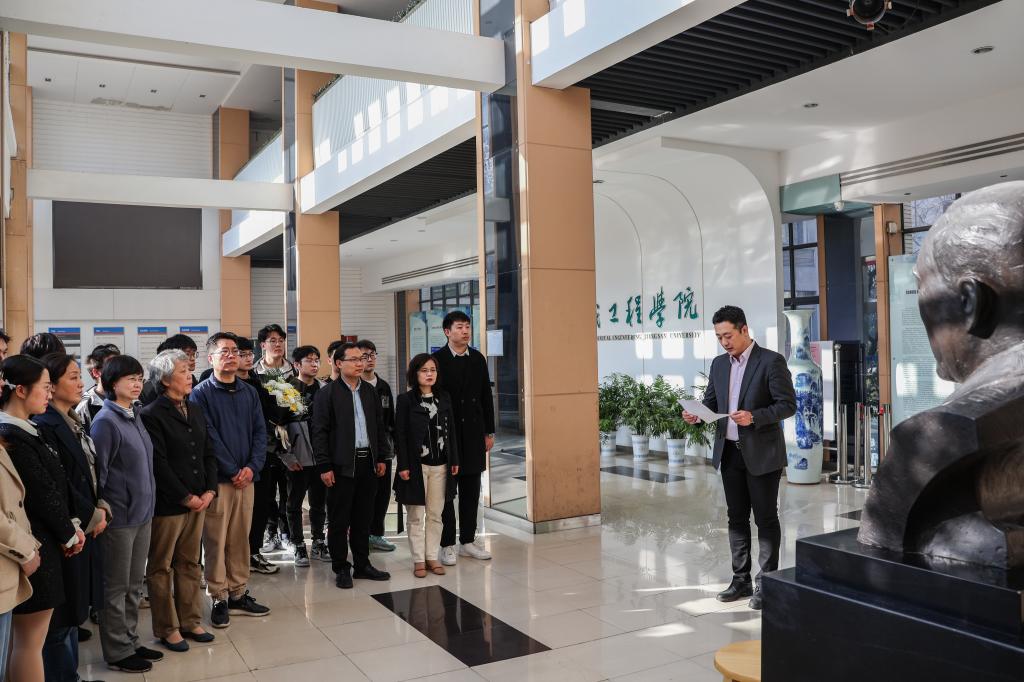 君远学院学生李明磊、刘俊超代表莘莘学子敬献鲜花,李可带领师生代表在塑像前三鞠躬致敬,再次表达对唐老先生的深切缅怀。唐翔千先生逝世五周年追思活动在肃穆的氛围中圆满结束。