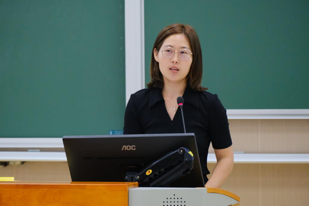 孟召双为新生们介绍了如何参与社会实践与志愿服务活动。她强调,同学们要注意综合素质培养,积极参加第二课堂活动,通过社会实践和志愿服务工作强化能力,培养责任心和使命感。
