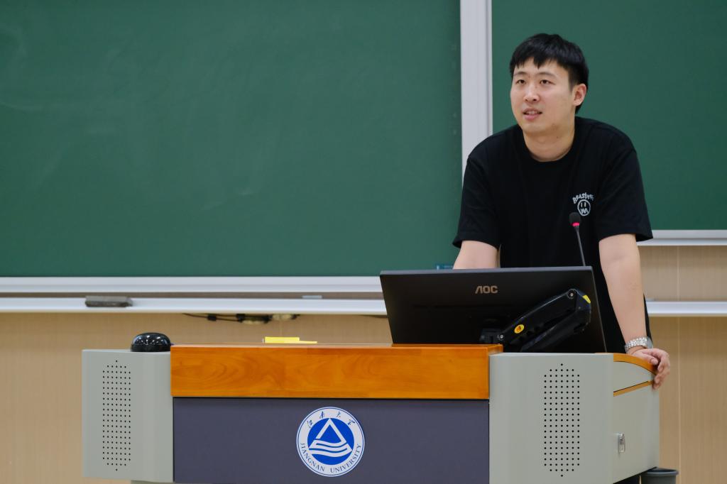 入党启蒙教育讲座上,余骏皓通过播放中国共产党员国际形象网宣片及分享优秀党员事迹帮助新生认识“什么是中共党员”。他抛出“为什么想入党”这一问题并引导帮助在座学生端正入党动机,他详细介绍了入党的流程及规范要求,鼓励新生们要以身边优秀党员为榜样,看齐靠拢,提升意识觉悟。