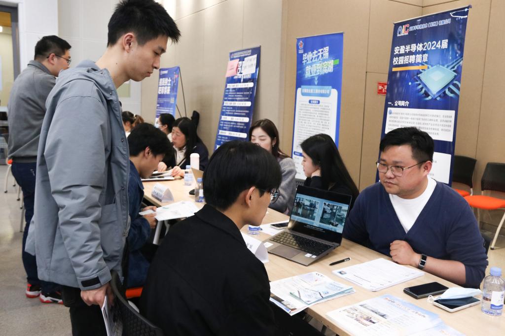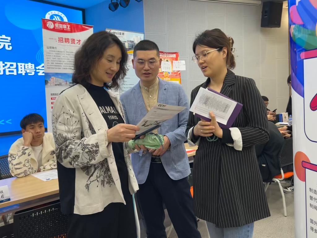 党委书记高雪梅,江南大学就业指导中心主任、学生工作处副处长单筱婷,院学工办副主任潘智琦,毕业年级辅导员何涛在招聘会现场,与用人单位进行充分交流,详细了解企业的用人需求,鼓励毕业生树立正确的就业择业观念,客观看待个人条件和社会需求,从实际出发选择职业和工作岗位。