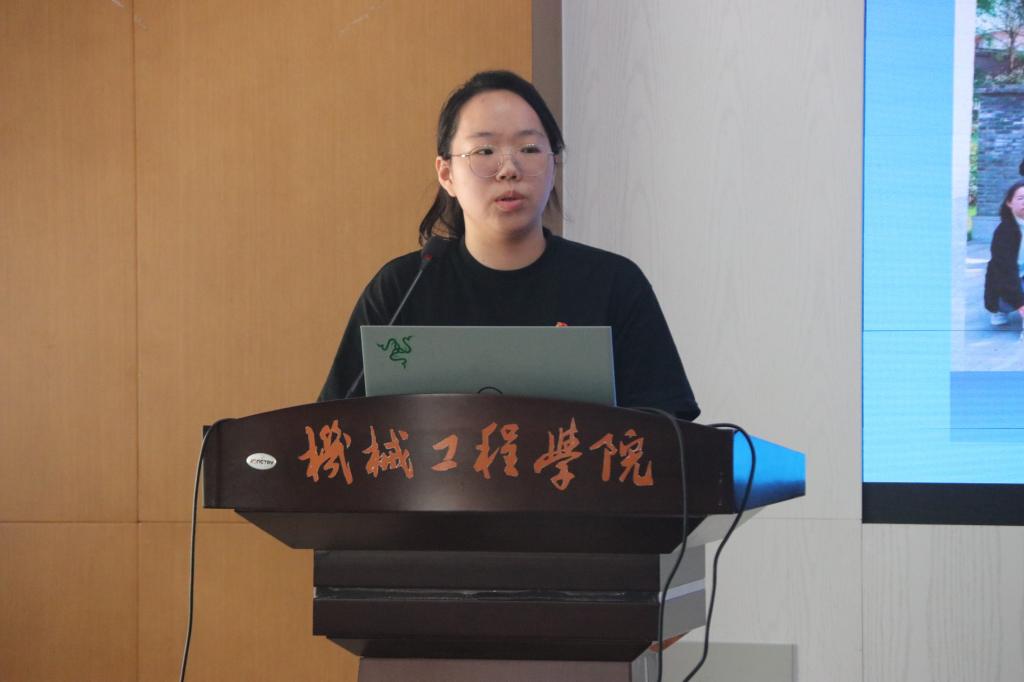 团支书吴静雯、班长孙崇皓分别作团支部本学期理论学习与实践、学科竞赛汇报,今年5月代表学校获中国大学生自行车挑战赛校史最佳成绩的李寒天分享了他与他身边的体育故事。顾正彪对团支部获省先进班集体、工训赛国金、SCI论文、发明专利等荣誉与进步表示肯定,他点评到,“机械2106团支部的每一位同学都有着很强的集体荣誉感,以小我的努力推动班级的进步,这便是团结协作、攀登高峰的班级文化。”