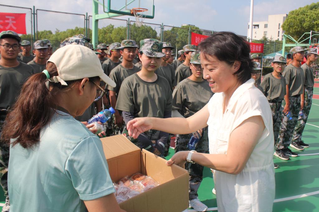 值此教师节之际,同学们也送出最真挚的教师节祝福,齐声道出“教师节快乐!”学生代表为领导老师们献上花束并合影。老师们亲自为同学们分发能量补给。暖心的话语,清凉的补给,为同学们驱散了骄阳带来的暑气,带来清流环绕左右。