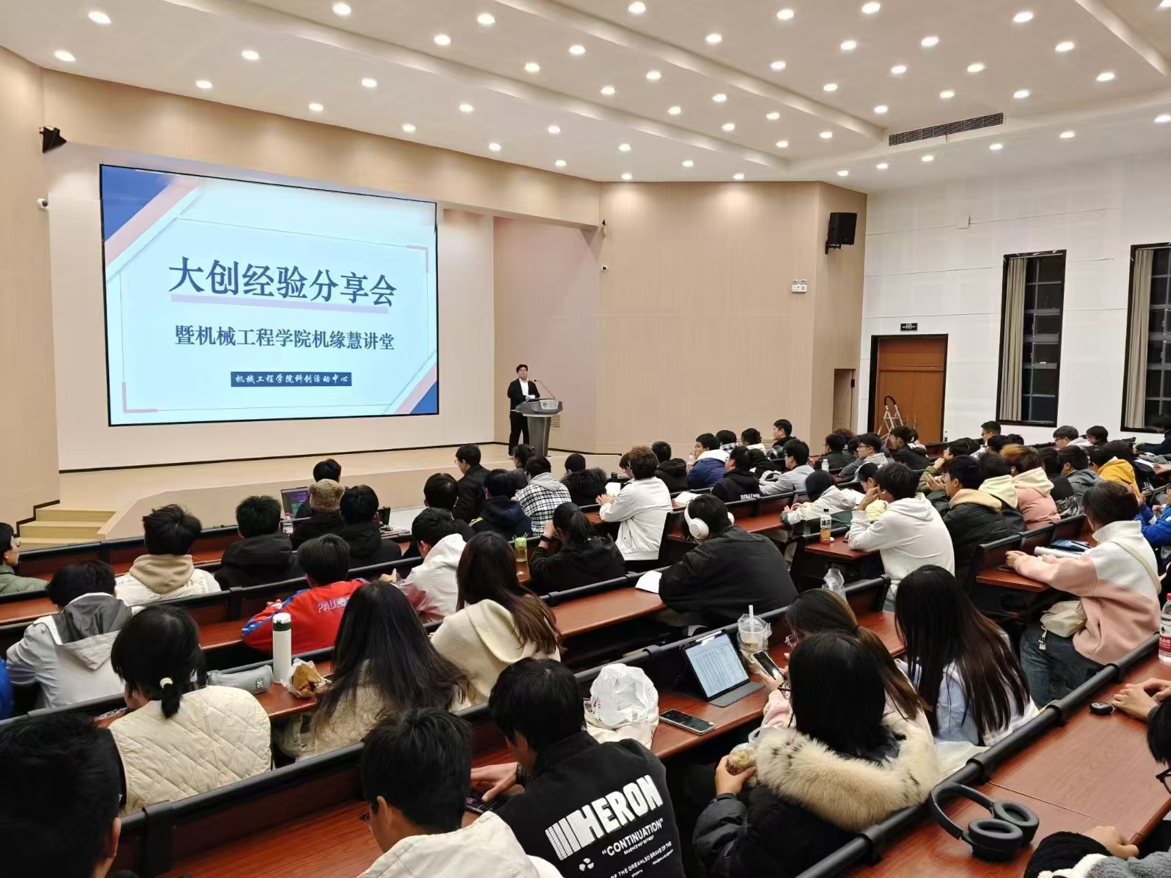 近日举办机缘“慧”讲堂暨大学生创新创业训练计划分享会,由赵宣、盛莹、劳钧杰三位同学主讲,100余名2023级、2024级本科生参与了此次分享会。