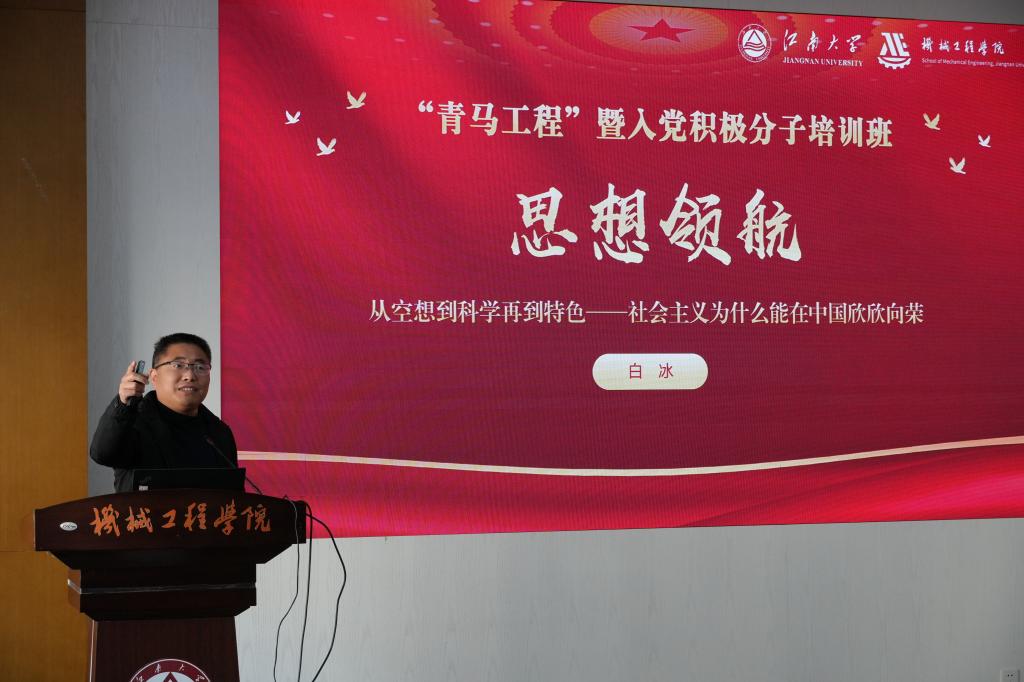 白冰围绕“从空想到科学再到特色——社会主义为什么能在中国欣欣向荣”这一主题,从“社会主义从空想到科学”“社会主义从理论到实现”“社会主义从一国到多国”以及“社会主义从传统到特色”四个维度,系统阐述了社会主义发展的历史脉络和现实意义。他以生动的语言深入浅出地剖析了空想社会主义的兴起与局限、科学社会主义的理论创立与实践发展,以及中国特色社会主义道路的历史逻辑与理论创新。他强调中国特色社会主义是从历史纵深中走来,是科学社会主义基本原则与中国具体实际相结合的伟大实践,中国特色社会主义道路是创造人民美好生活、实现中华民族伟大复兴的康庄大道。他期望在座的青年学子听党话、跟党走,怀抱梦想又脚踏实地,敢想敢为又善作善成,以青春之我,奋斗之我,为建设社会主义现代化强国贡献青春力量。
