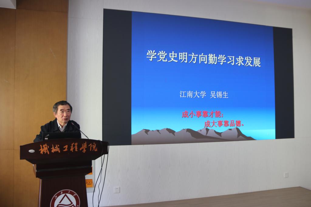 党委承办,纺织科学与工程学院、物联网工程学院、环境与生态学院党委协办。机械学院党委书记高雪梅,江南大学关工委特邀报告员吴锡生,机械学院党委副书记、副院长刘升恒,纺织学院党委副书记、副院长杨莉勤,各学院培训班班主任以及全体学员参加。
