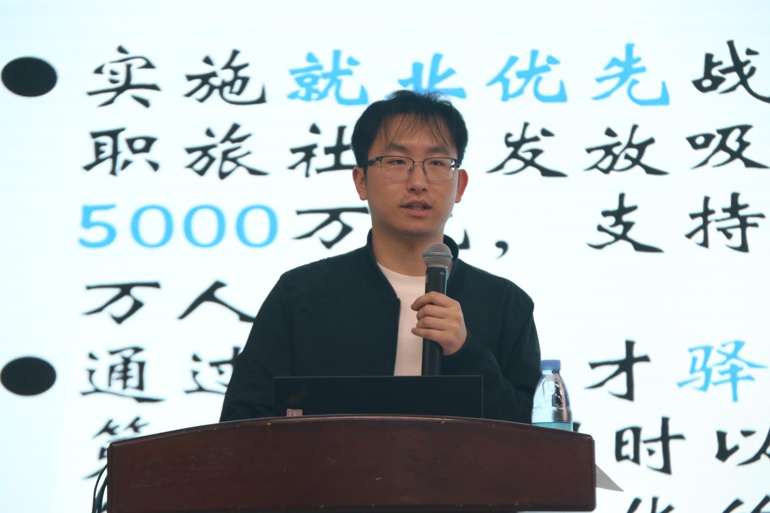 政策宣讲环节,校西部计划宣讲团成员蔡皓雯以详实的数据,围绕项目背景、运行机制、政策支持、招募标准及服务领域等重点内容,对2025年度西部计划与江苏大学生乡村振兴计划进行了系统而深入的解读。团新吴区委副书记王翼寅以“聚焦发展高地、青春创造未来”为主题,生动展现了科技感、国际范、年轻态和实力派的无锡高新区,通过青年人才驿站、青年夜校、青年交友等特色品牌项目全面推介了青春新吴建设成果,最后,他从岗位设置、服务流程到保障机制,再到职业发展通道,志愿者风采,层层递进地介绍乡村振兴专项计划,诚挚邀请青年学子加入,领略高新区的“发展机遇”与“人文温度”。新吴区梅村街道团工委书记胡浩雯立足基层工作实践,将梅村的历史底蕴与现代风采娓娓道来,勾勒出新梅村的美丽风貌,鼓励更多青年学子在这片历史与现代交融的热土上,用青春书写乡村振兴的新篇章。