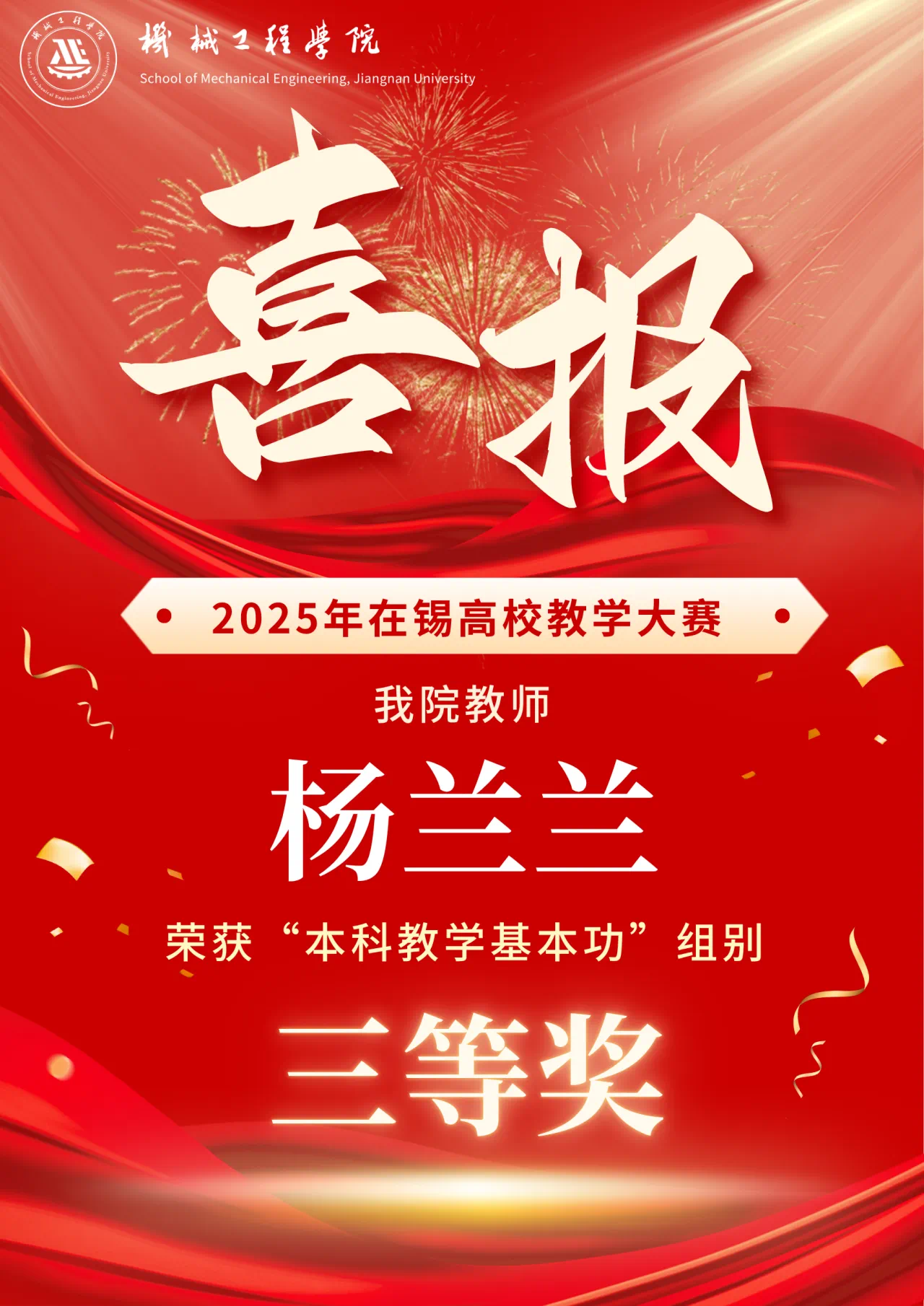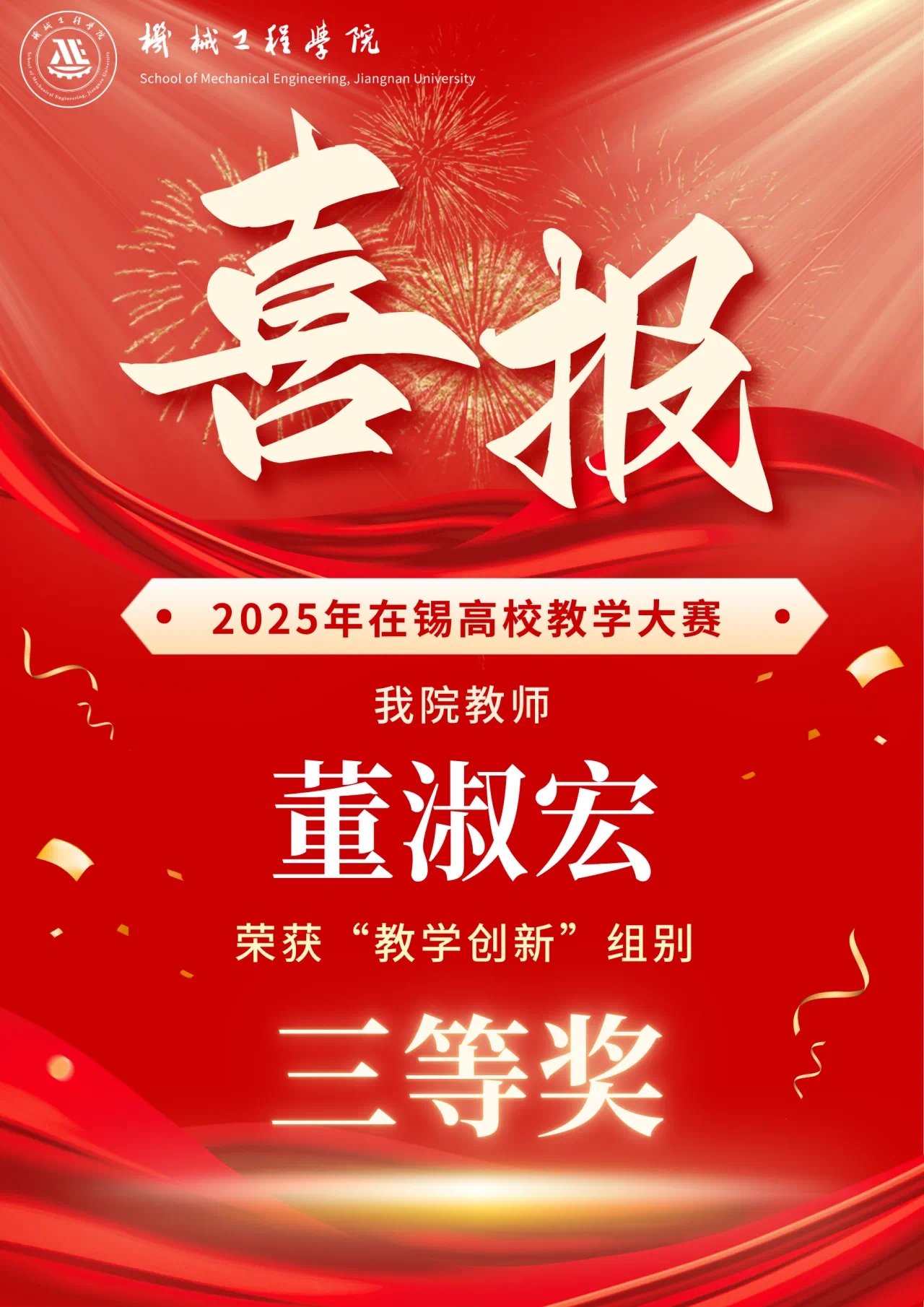 近日,由无锡市教育局高等教育处主办的“2025年在锡高校教学大赛”评选结果揭晓。经过激烈角逐,汇旺娱乐