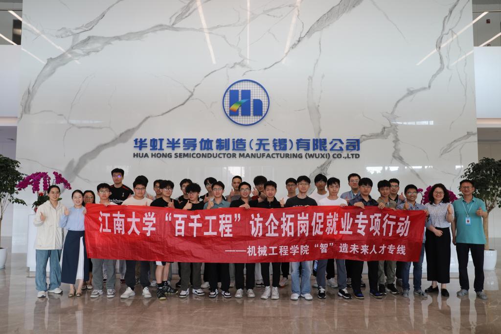 赴华虹半导体(无锡)有限公司开展访企拓岗专项行动。活动主要包括企业展厅和生产车间参观、HR面对面、校友交流座谈等形式。学院党委副书记、副院长刘升恒带队,学院分团委书记、学工办主任李诗炜,就业负责老师与20余名2026届本、硕学生参加活动。