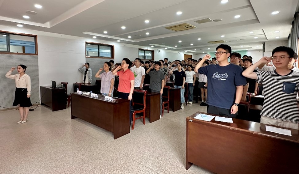 举行毕业生党员教育暨新党员“七一”宣誓活动。学院党委书记高雪梅、党委副书记兼副院长刘升恒、学工办主任兼分团委书记李诗炜、2025届毕业生党员及2025年新发展党员参加本次活动,活动由党建辅导员宋京姝主持。