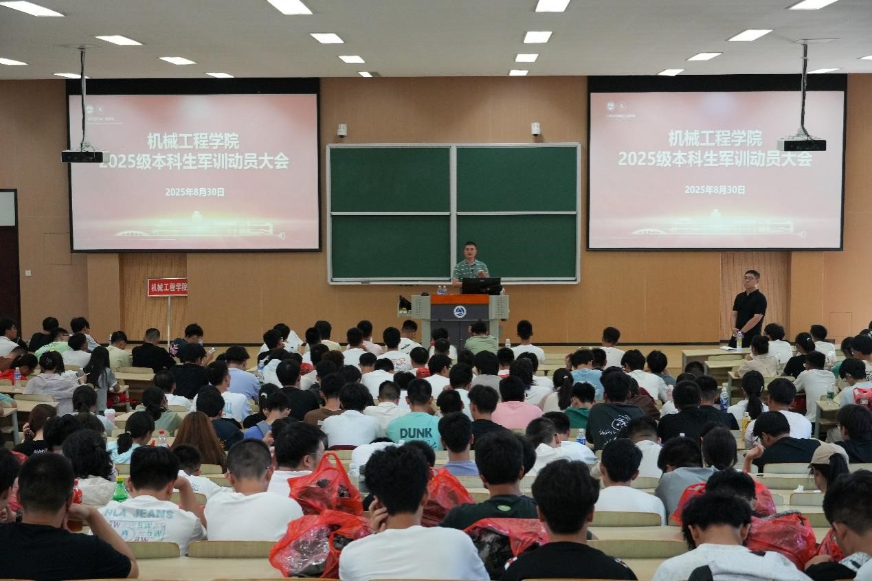 在2A127教室隆重举行2025级新生军训动员大会暨年级大会。会议由2025级辅导员何涛主持,学院党委副书记、副院长刘升恒、校人武部科长刘璇刚、带训辅导员余骏皓及2025级全体新生参加。