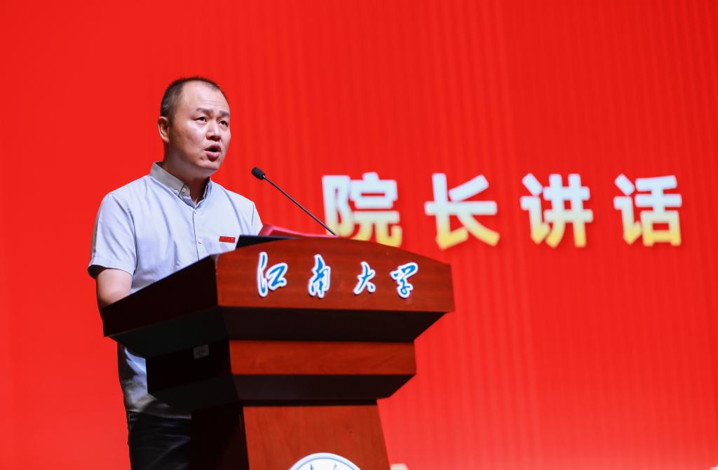 副院长王东祥面向全体研究生新生开展学术道德与学术规划专题讲座。他从学术道德基本操守、合作规范、引用与注释标准等方面进行讲解,并结合学术不端案例开展警示教育,强调筑牢科研底线意识,勉励研究生做“顶天立地”的江南科研人。