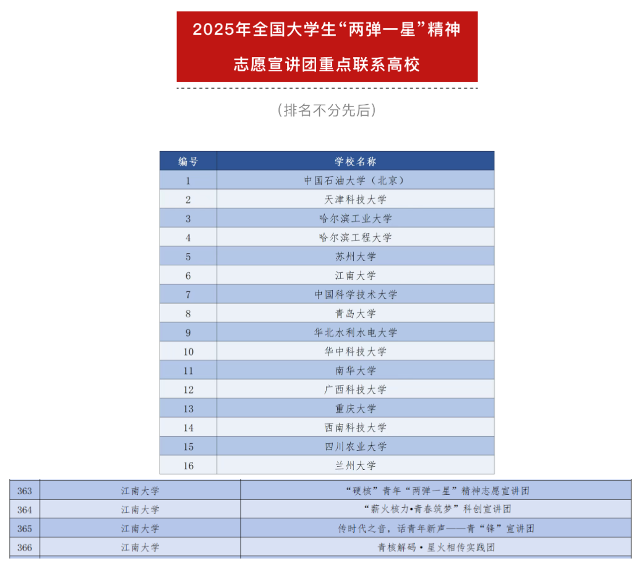 江南大学入选全国大学生“两弹一星”精神志愿宣讲团重点联系高校