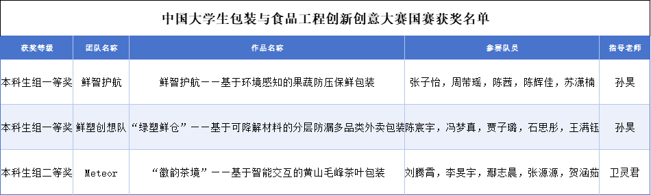 近日,2025年中国大学生包装与食品工程创新创意大赛全国总决赛在福建厦门集美大学举办,来自全国各高校共103支队伍角逐总决赛,我校斩获总决赛一等奖2项、二等奖1项。